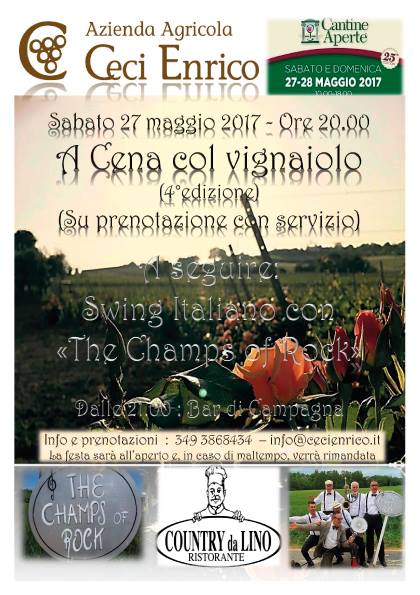 Vi aspettiamo nella nostra azienda per passare insieme due giornate all’insegna dell’allegria: assaggiando i nostri vini - passeggiando in mezzo ai filari, ammirando il miracolo che ogni giorno la natura ci offre - scoprendo i segreti del lavoro in vigna e in cantina - ascoltando la storia di chi, ogni giorno, lavora duramente ma con tanto entusiasmo per ottenere prodotti sempre più buoni e sani.