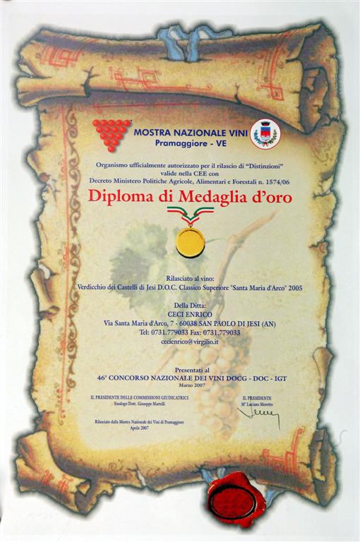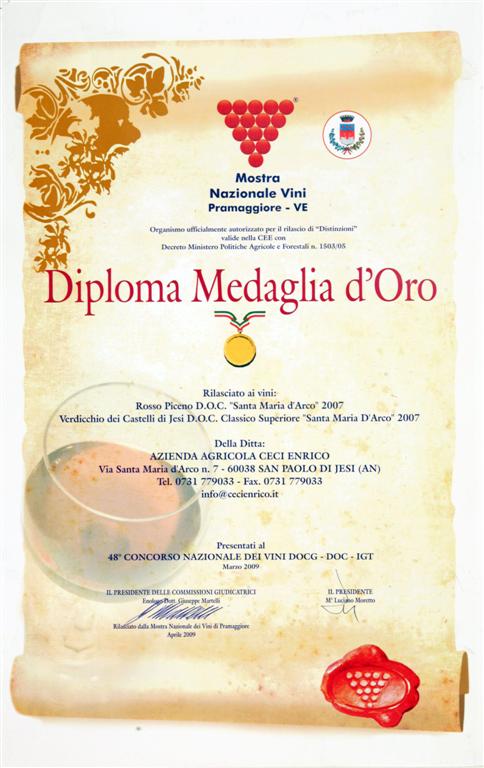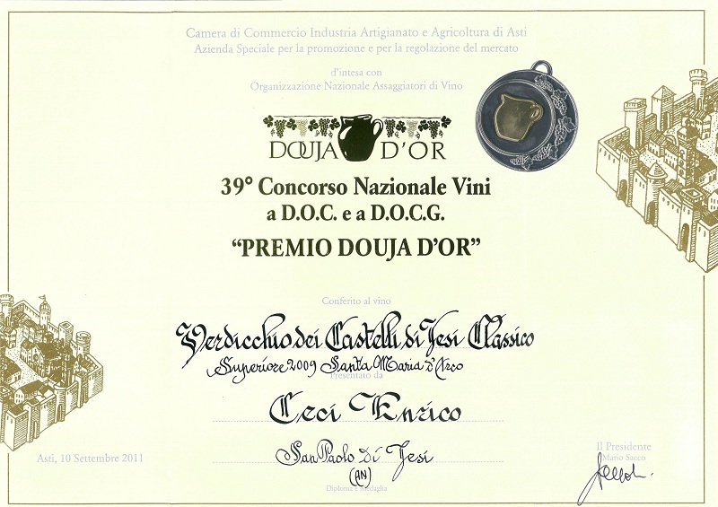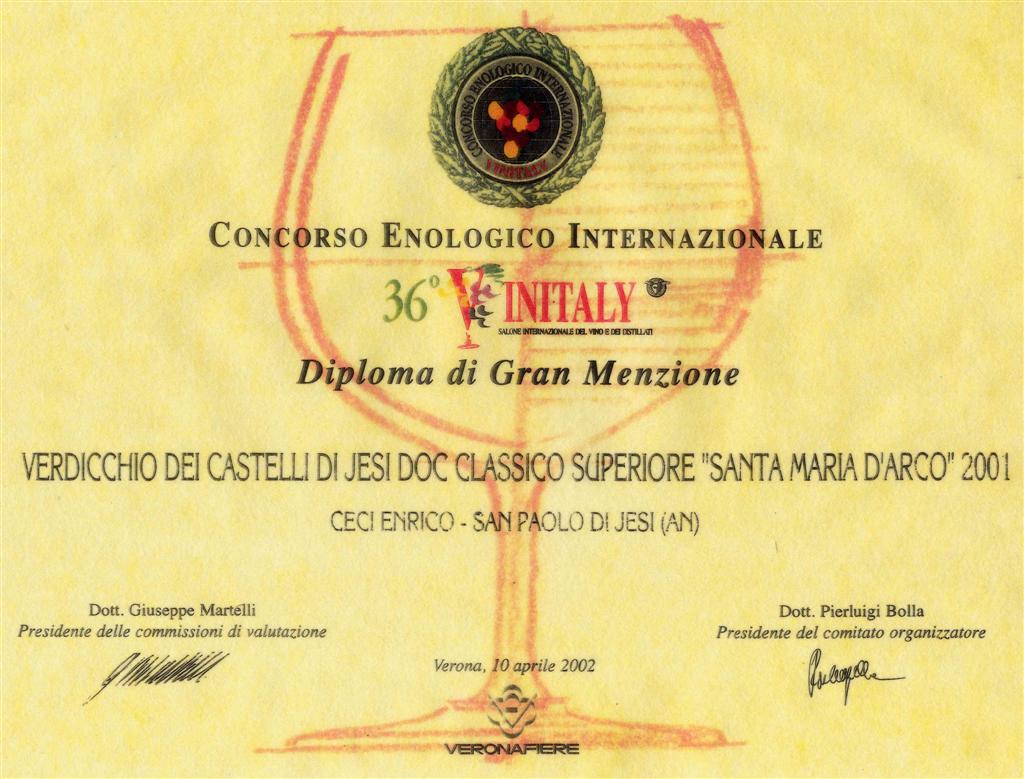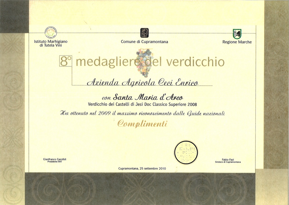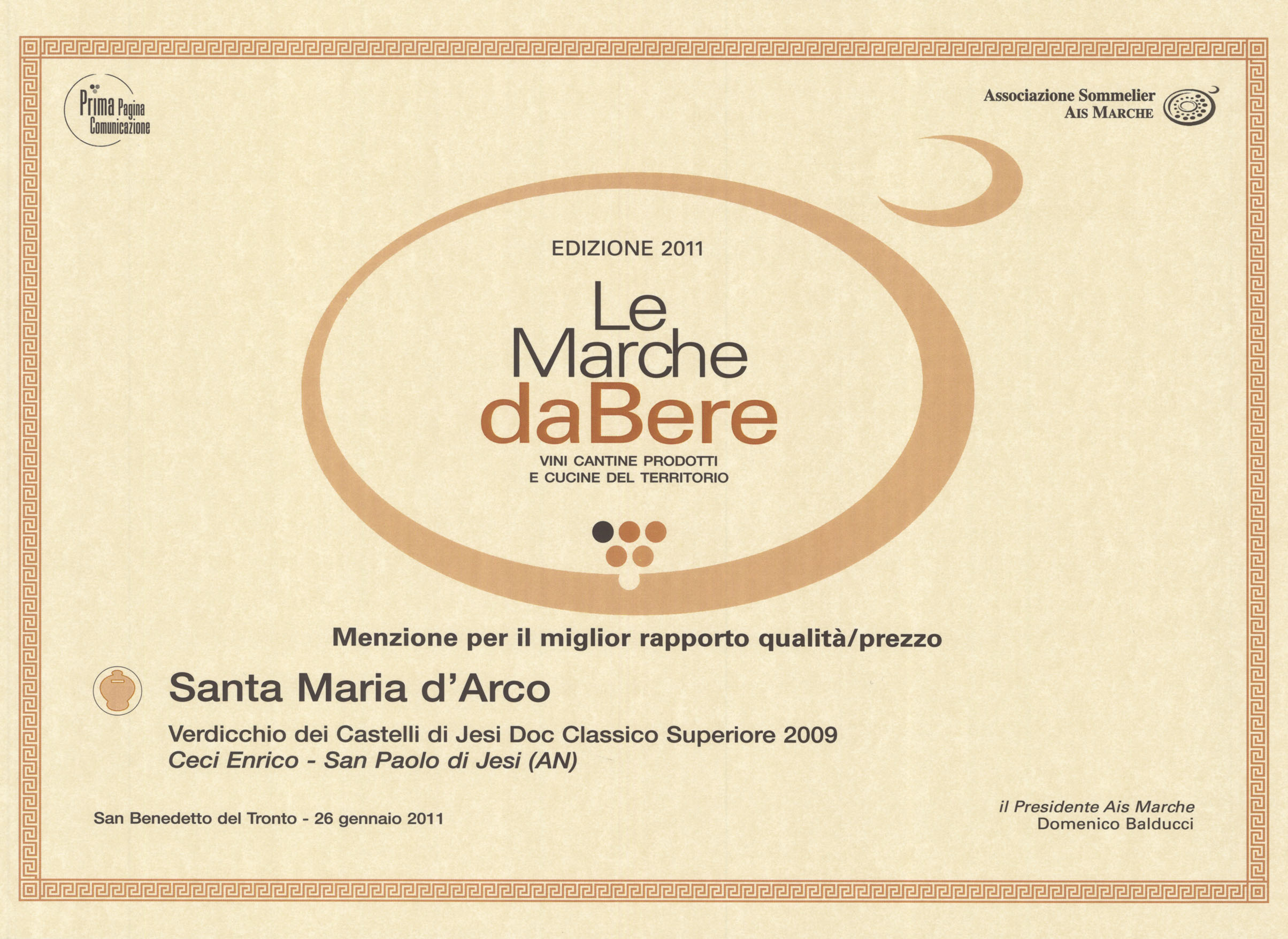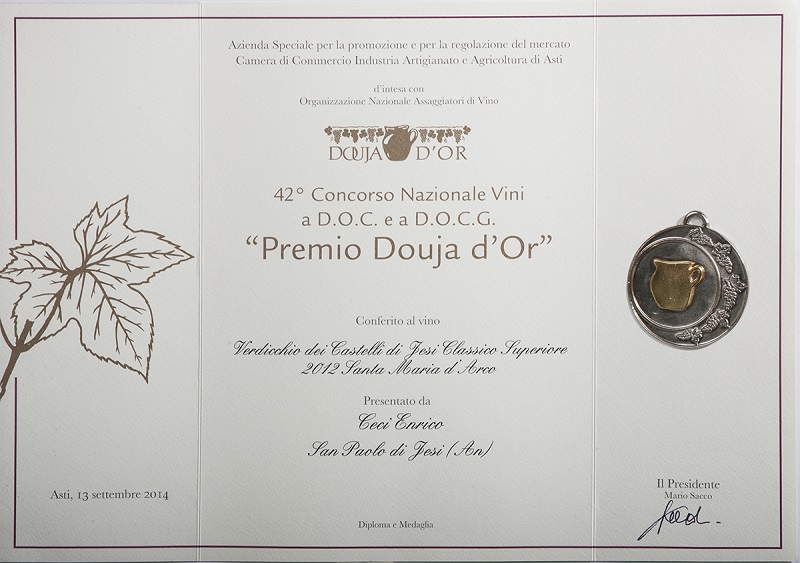 - Superficie totale vigneti: circa 9 ettari; di cui circa 1,8 destinati al Verdicchio dei Castelli di Jesi Classico Superiore “Santa Maria d’Arco”;